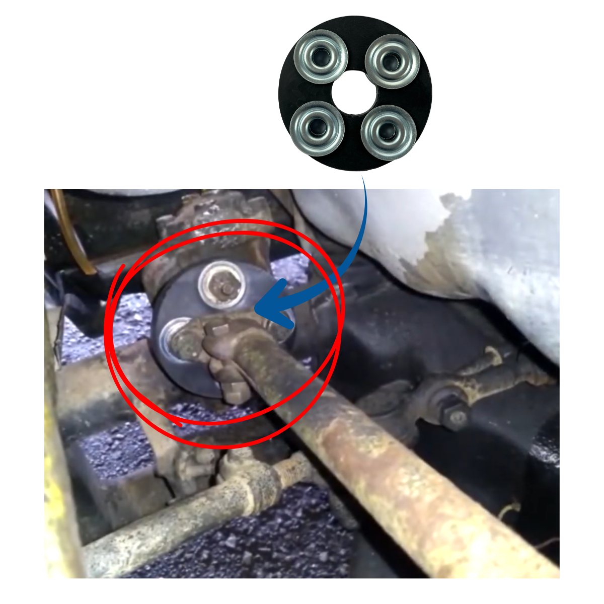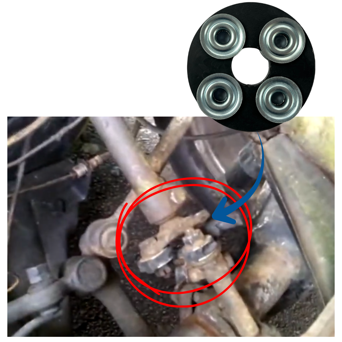 Junção de borracha com anéis em metal.