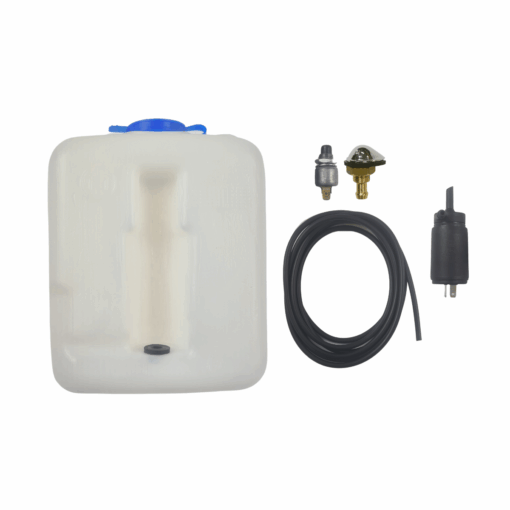 Inclui: 1 Brucutu Gora cromado, 1 mangueira de 3 metros, 1 reservatório de água, 1 bombinha elétrica 12 volts, 1 chave de acionamento.
